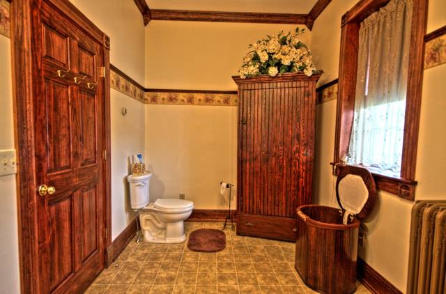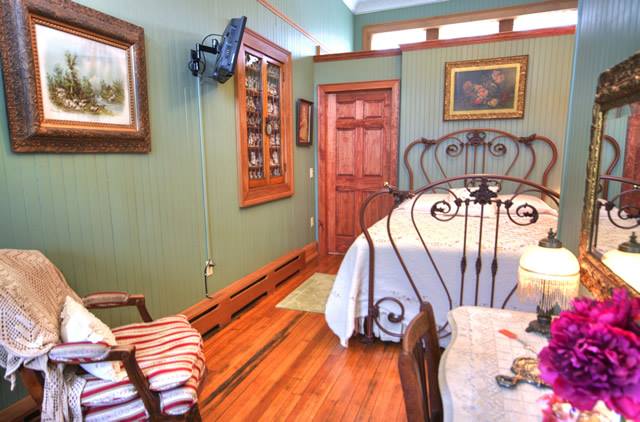 This room features Victorian marble furnishings and hardwood floors. A private balcony overlooks the garden, and a spacious bathroom just across the hall shared by one other room.