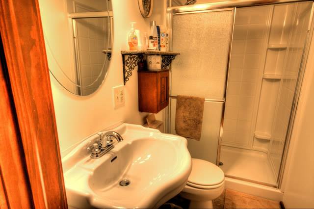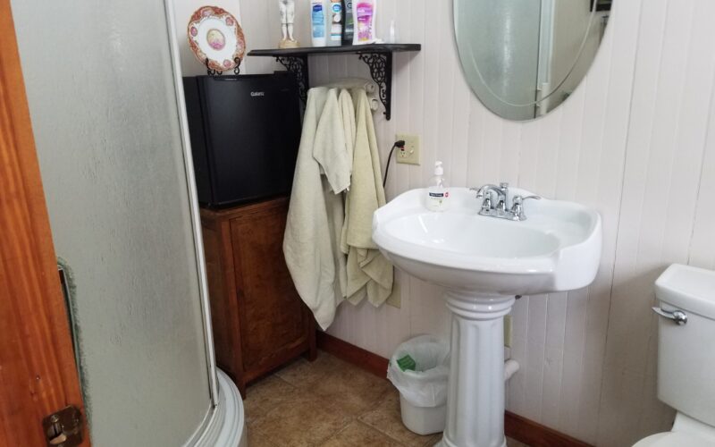 Featuring a queen-size bed and private bath with a shower and pedestal sink. A refrigerator is provided, and the private entry that will make it an ideal option for guests traveling with pets.
